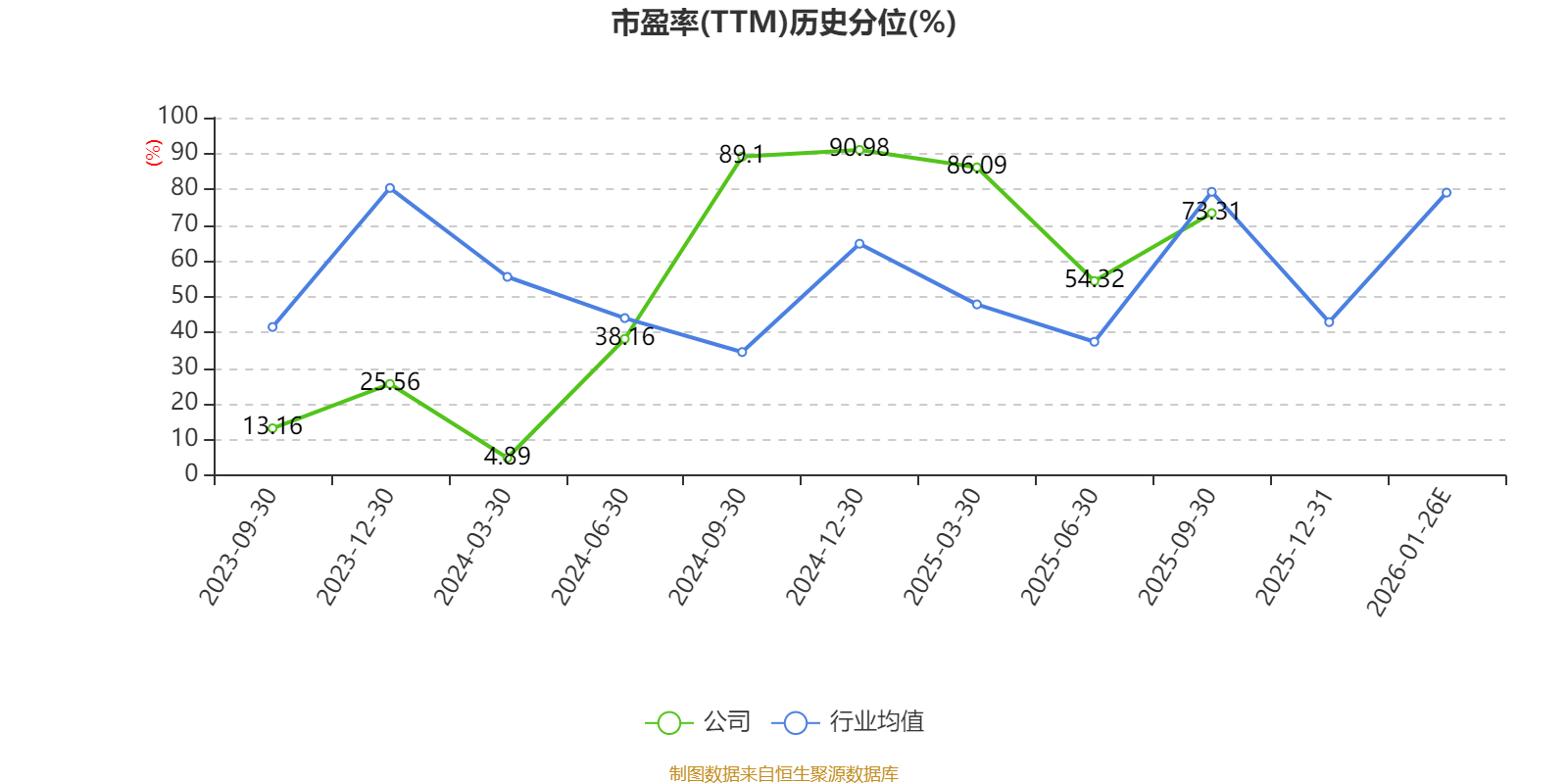 以本次披露业绩预告均值计算,公司近年市盈率(TTM)图如下所示: