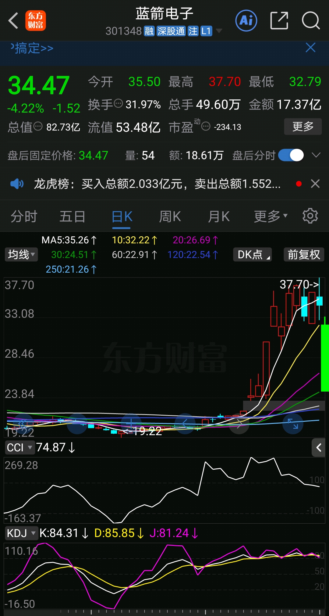 $蓝箭电子(SZ301348)$ 破位了,今天跌停,明天还要大跌十个点吧?