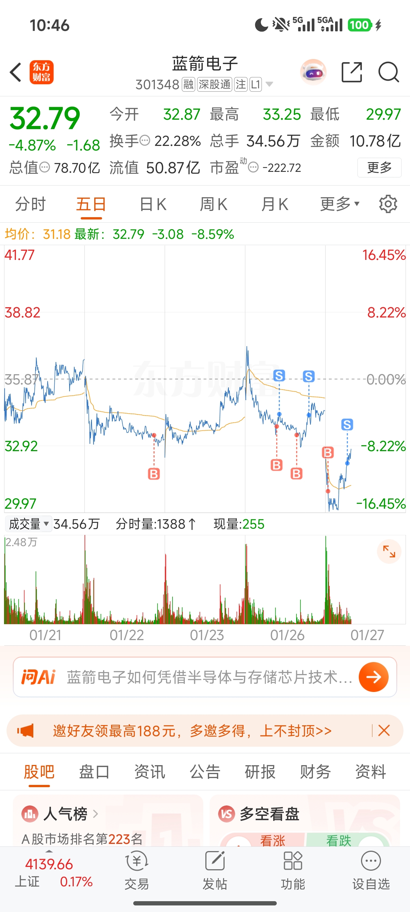 $蓝箭电子(SZ301348)$ 博反包进场,没走,感觉要变成长期股东了