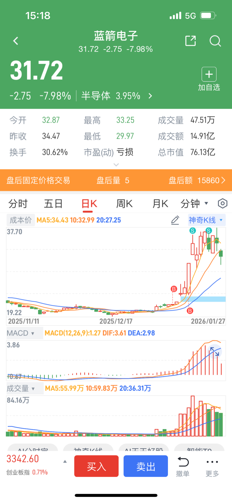 $蓝箭电子(SZ301348)$ 今天清仓了,感谢主力!祝各位留下的继续发财!