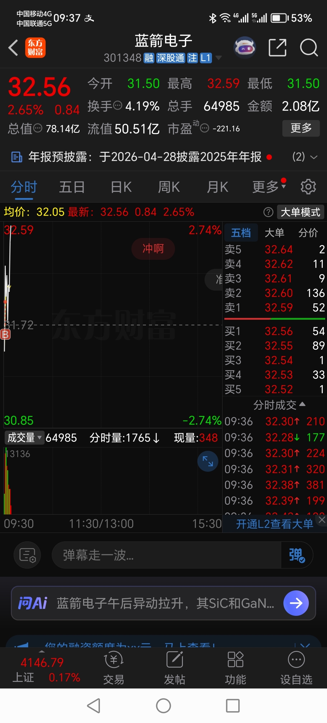 $蓝箭电子(SZ301348)$ 果然如此走势,今天要吃肉