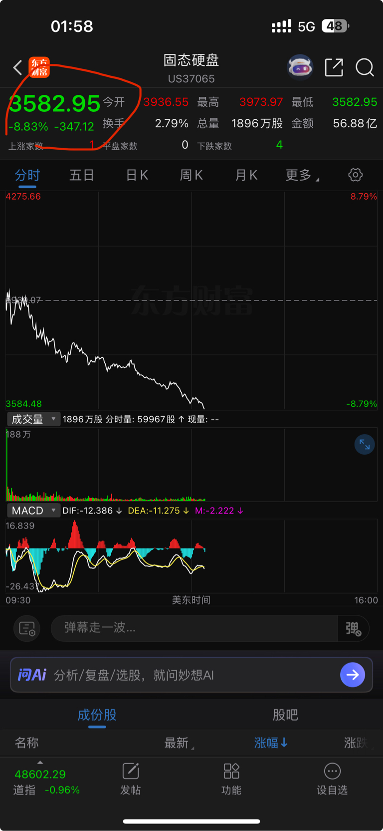 $蓝箭电子(SZ301348)$ 周一危险了,美股存储芯片跌幅8.8%