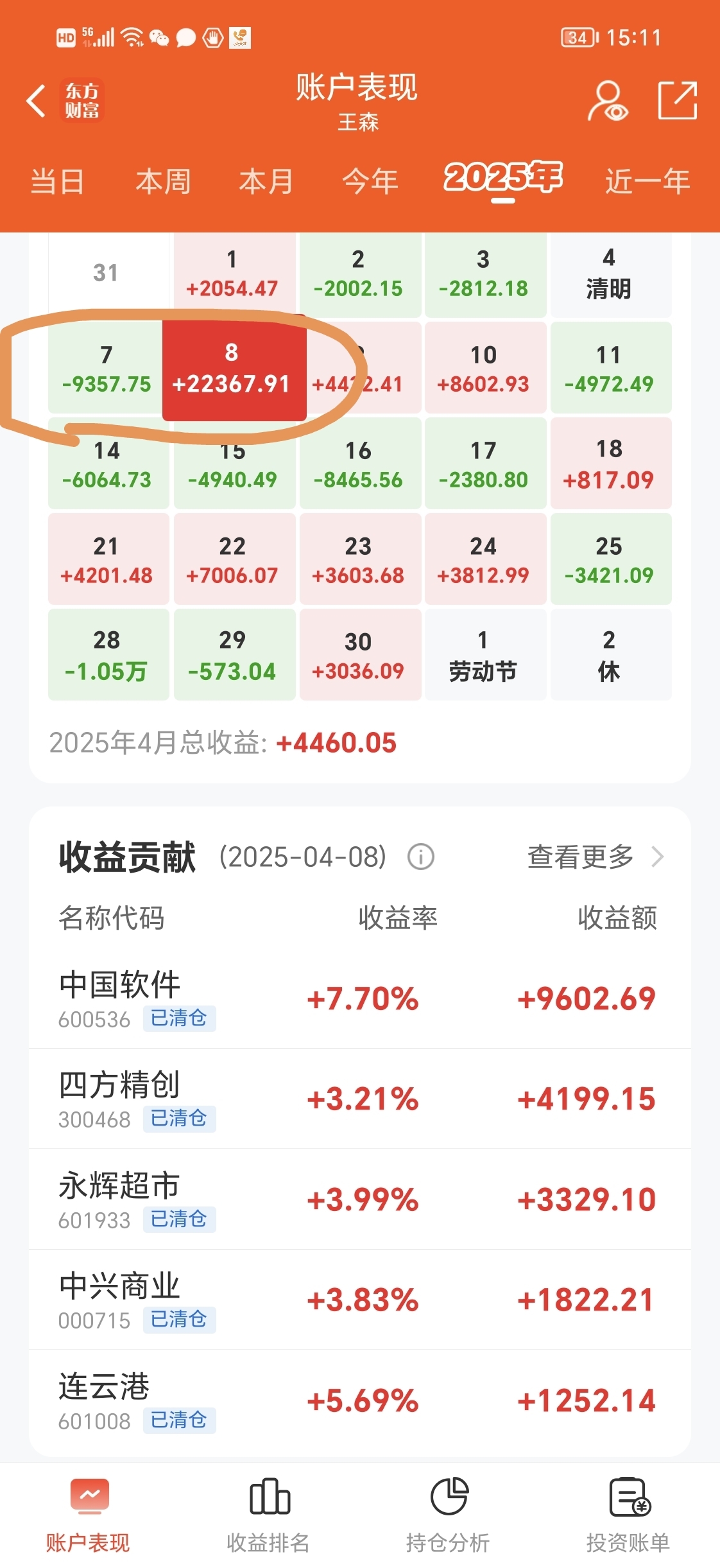 打个卡,去年4月7号千股跌停亏了9000,隔天就红了2万,今天重仓了,买了15万