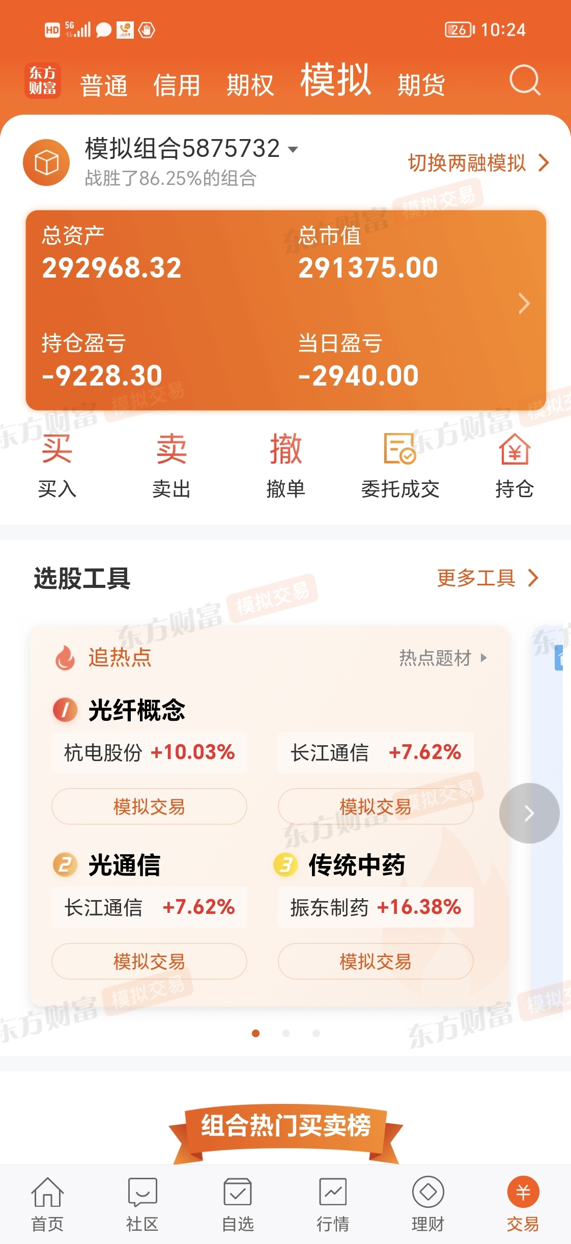 二月份蓝箭一直跌,模拟票买了不动一共都没有亏一万,实盘这几天换来换去亏了2500