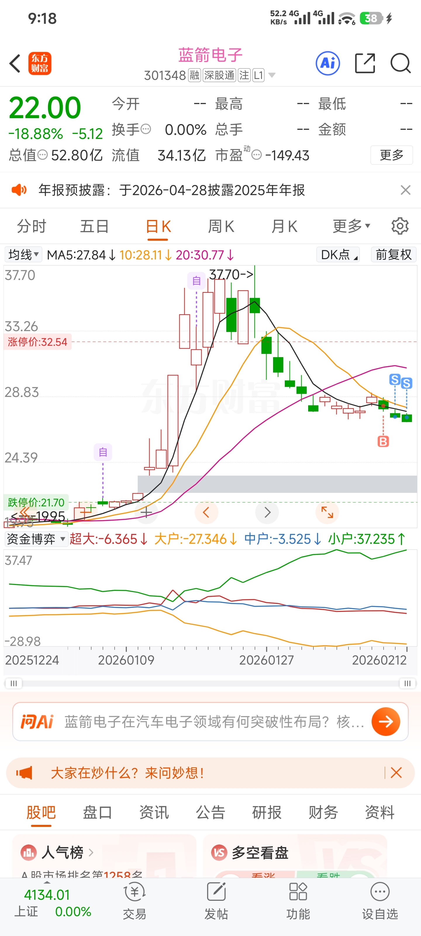 $蓝箭电子(SZ301348)$ 还好昨天我清仓了