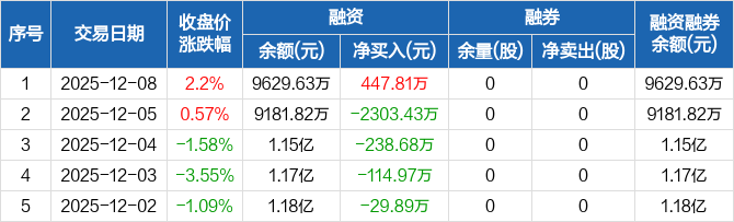 信德新材:融资净买入447.81万元,融资余额9629.63万元(12-08)