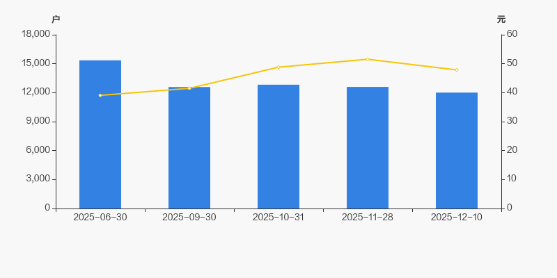 2025年6月30日至今,公司股东户数显著下降,区间跌幅为21.78%。2025年6月30日至2025年12月10日区间股价上涨22.50%。