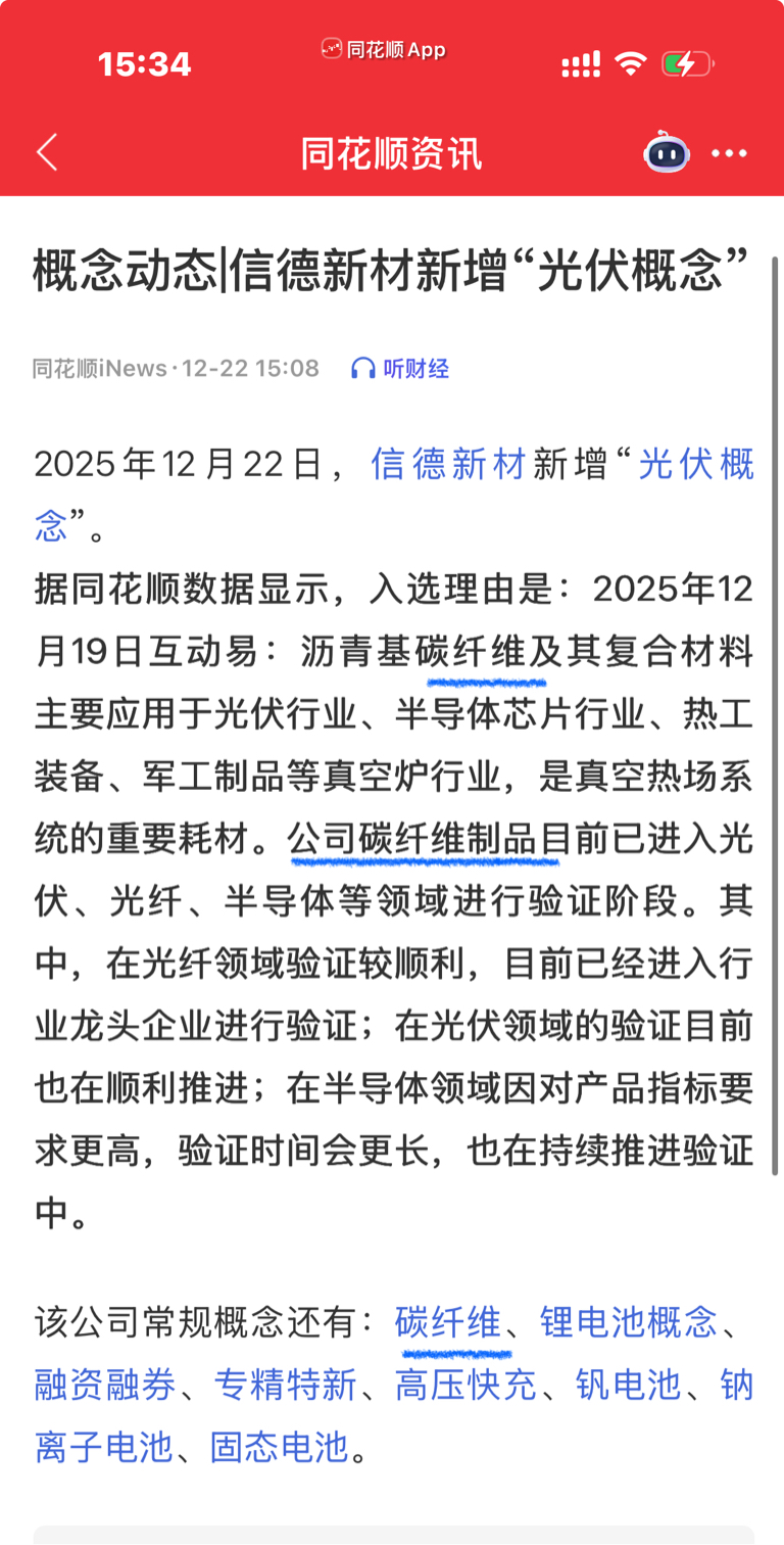 $信德新材(SZ301349)$ 公司也有碳纤维产品,今天碳纤为大涨,而这货今天不涨,难道主力没有发现咱们也有碳纤维吗?