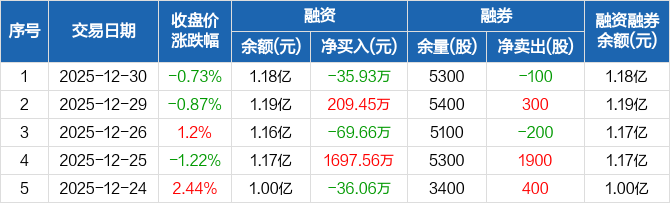 信德新材:融资净偿还35.93万元,融资余额1.18亿元(12-30)