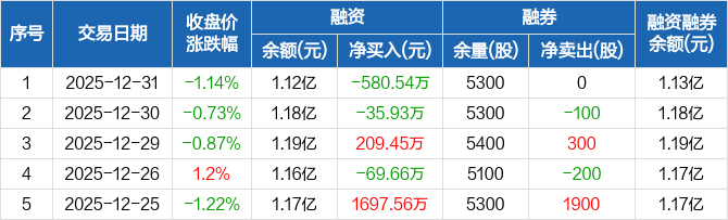 信德新材:融资净偿还580.54万元,融资余额1.12亿元(12-31)