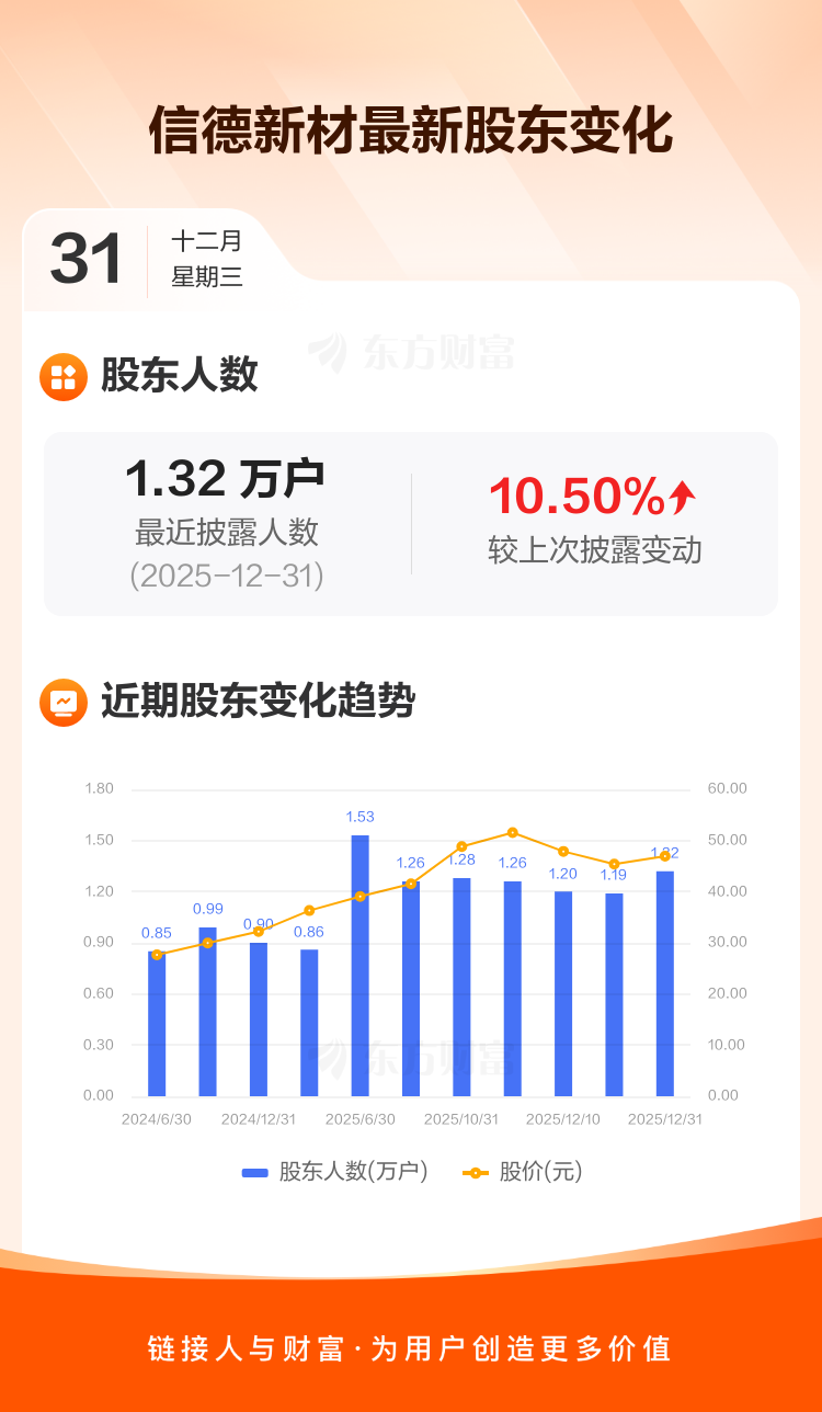信德新材:截至12月31日最新股东户数1.32万户,较上期增加10.50%