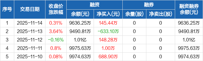 南王科技:融资净买入145.44万元,融资余额9636.25万元(11-14)