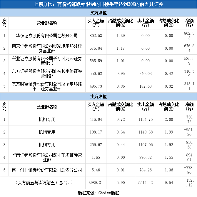 深交所2025年12月10日交易公开信息显示,南王科技因属于有价格涨跌幅限制的日换手率达到30%的前五只证券而登上龙虎榜。南王科技当日报收14.36元,涨跌幅为-1.64%,换手率38.16%,振幅13.49%,成交额5.78亿元。