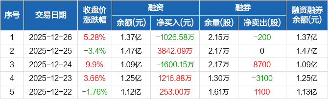 南王科技:融资净偿还1026.58万元,融资余额1.37亿元(12-26)