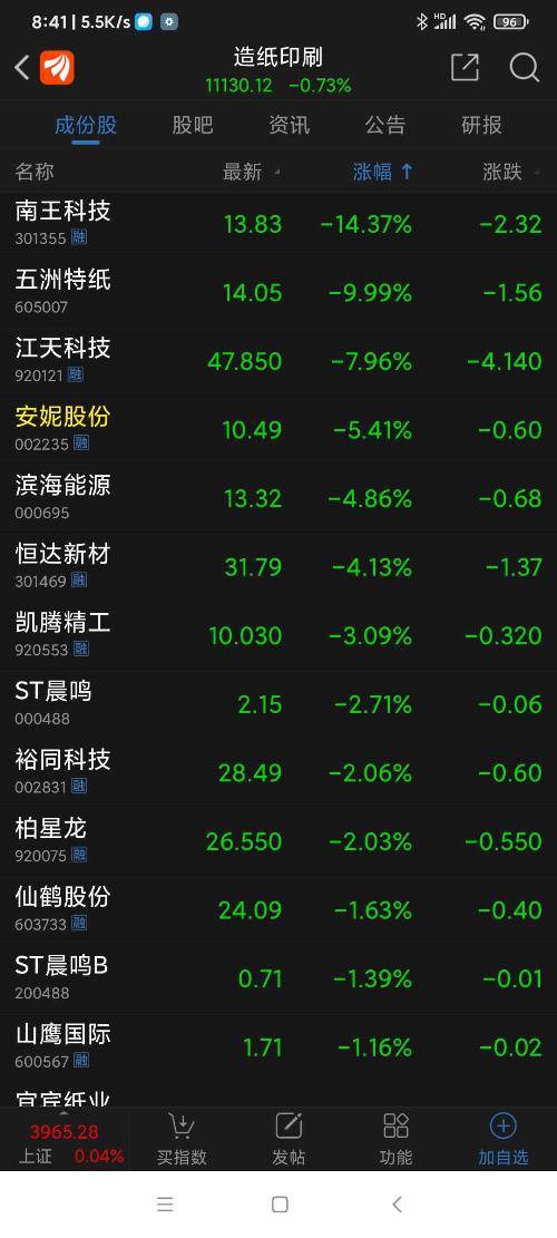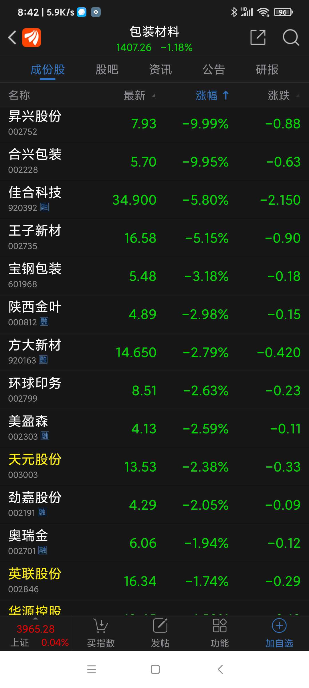 昨日南王科技、五洲特纸领跌造纸印刷板块,昇兴股份、合兴包装领跌包装材料板块。