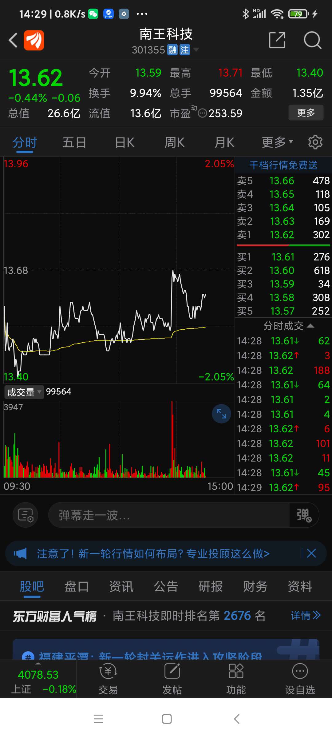 15.61元买入南王科技三千股,愿明天能赚一点。