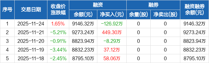 天振股份:融资净偿还126.92万元,融资余额9146.32万元(11-24)