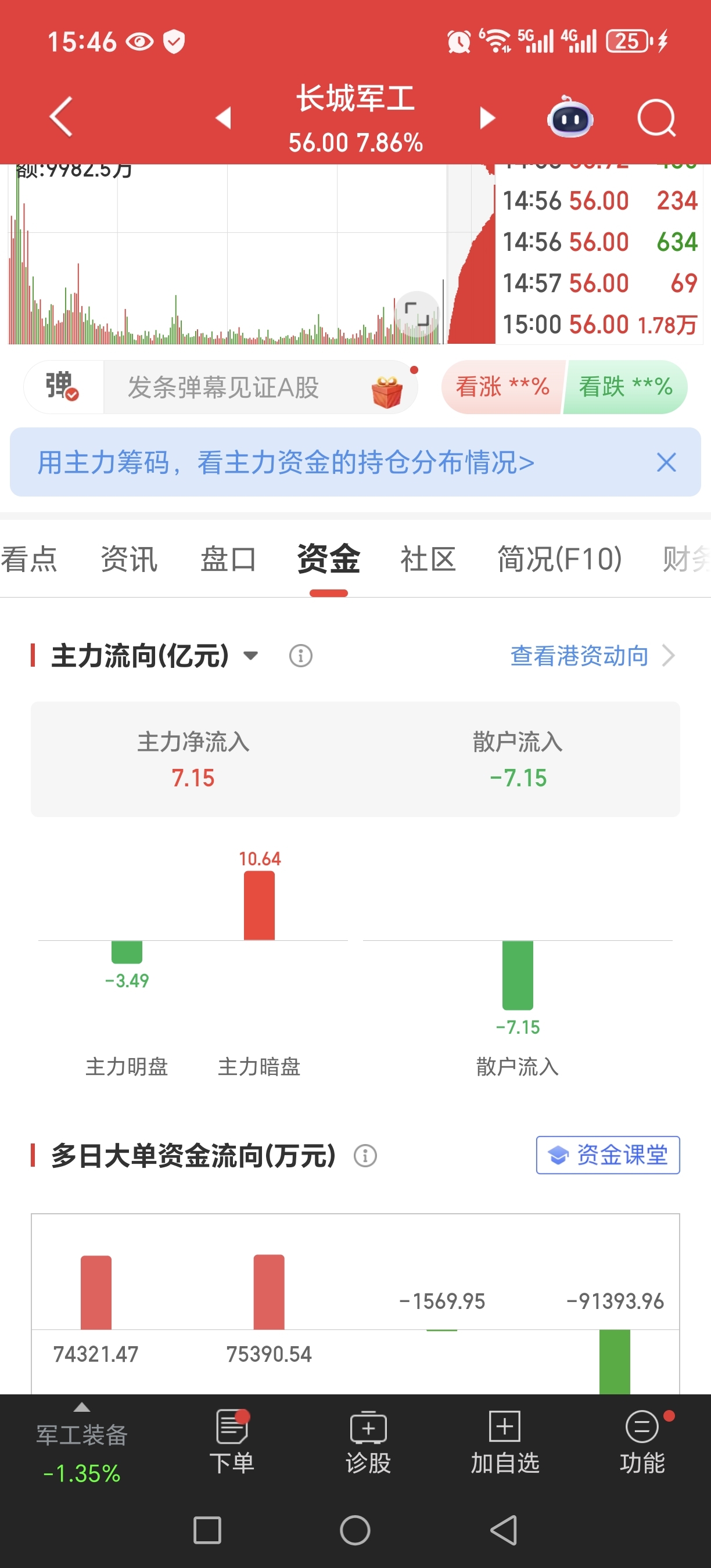 $北方长龙(SZ301357)$ 长城军工暗盘流入10个亿,北方长龙暗盘流入6千多万