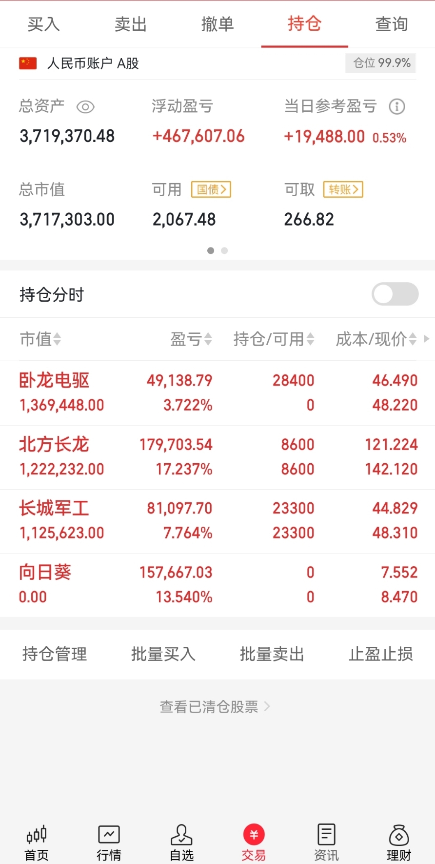 目前仓位是$北方长龙(SZ301357)$ ,$长城军工(SH601606)$ ,明天看看有没有好事发生