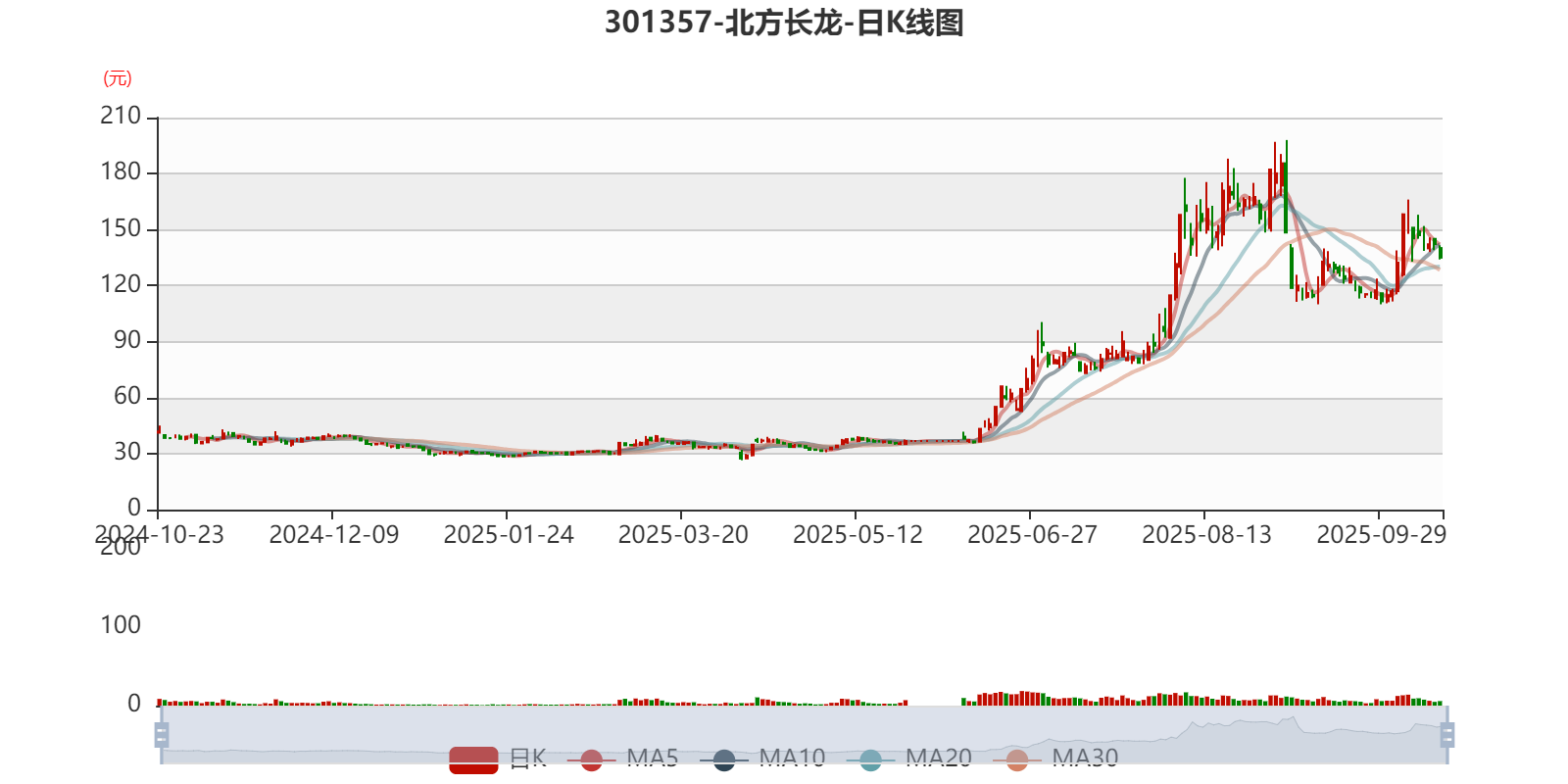 以10月22日收盘价计算,北方长龙目前市盈率(TTM)约为1190.15倍,市净率(LF)约11.3倍,市销率(TTM)约70.41倍。