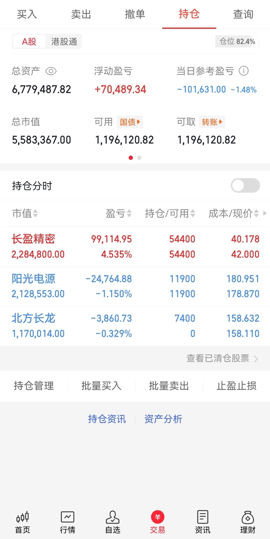 仓位$北方长龙(SZ301357)$ $长盈精密(SZ300115)$ $阳光电源(SZ300274)$