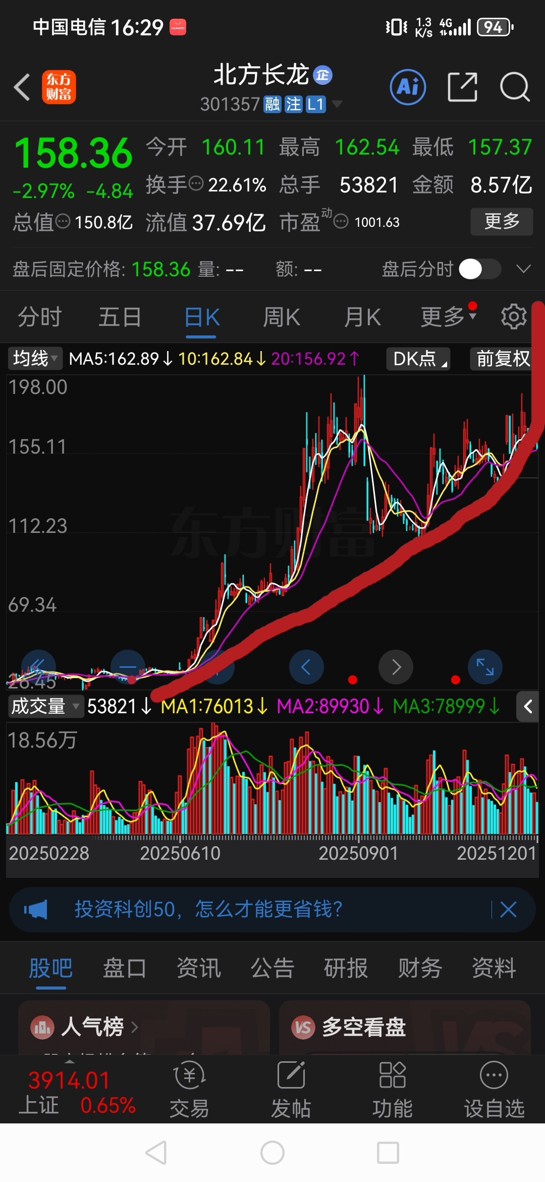 $北方长龙(SZ301357)$ 走势很稳~依然处于缓慢上升通道中,坚定持有必有厚报,本月底站上300元