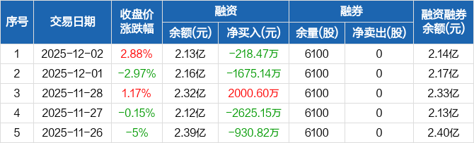 北方长龙:融资净偿还218.47万元,融资余额2.13亿元(12-02)