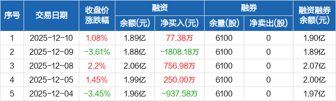 北方长龙:融资净买入77.38万元,融资余额1.89亿元(12-10)