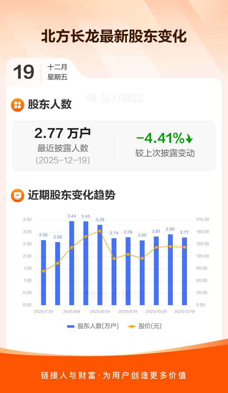 北方长龙:截至12月19日最新股东户数2.77万户,较上期减少4.41%