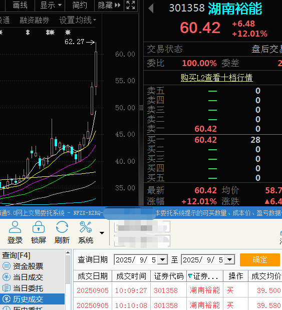 301358湖南裕能9月5日买入已经获利50%啦!最近进的几只电池票都表现很好。