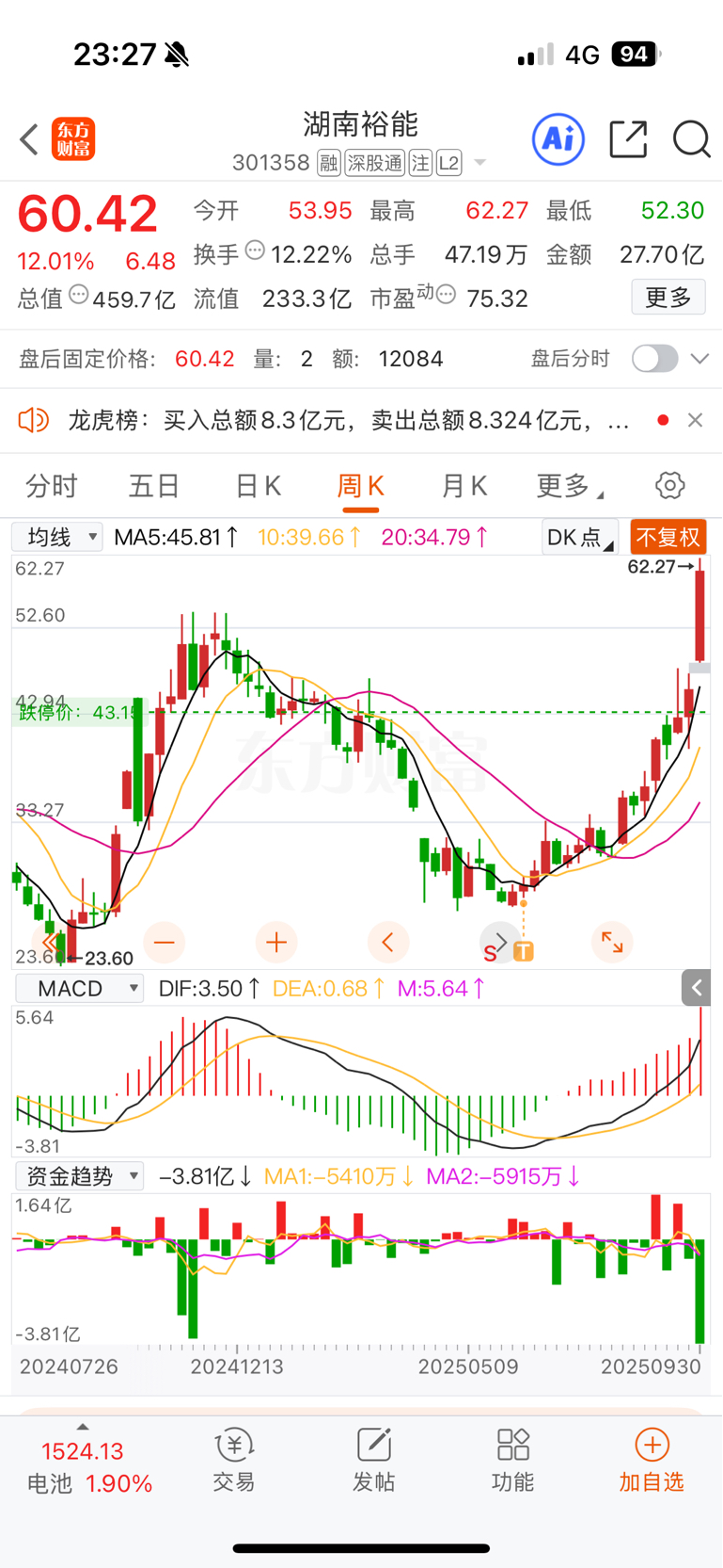 $湖南裕能(SZ301358)$ 卖早了29卖的