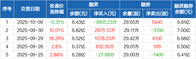 湖南裕能:融资净偿还3905.23万元,融资余额6.43亿元(10-09)