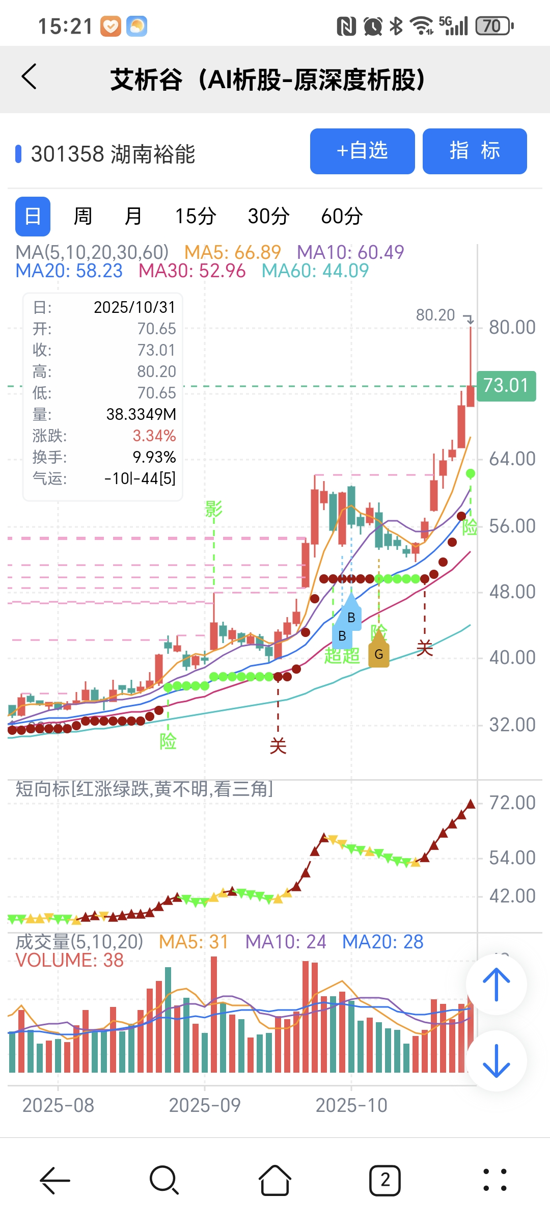 图中 B、G 关注标记是对应AI选股模型当天下午2点多给出。