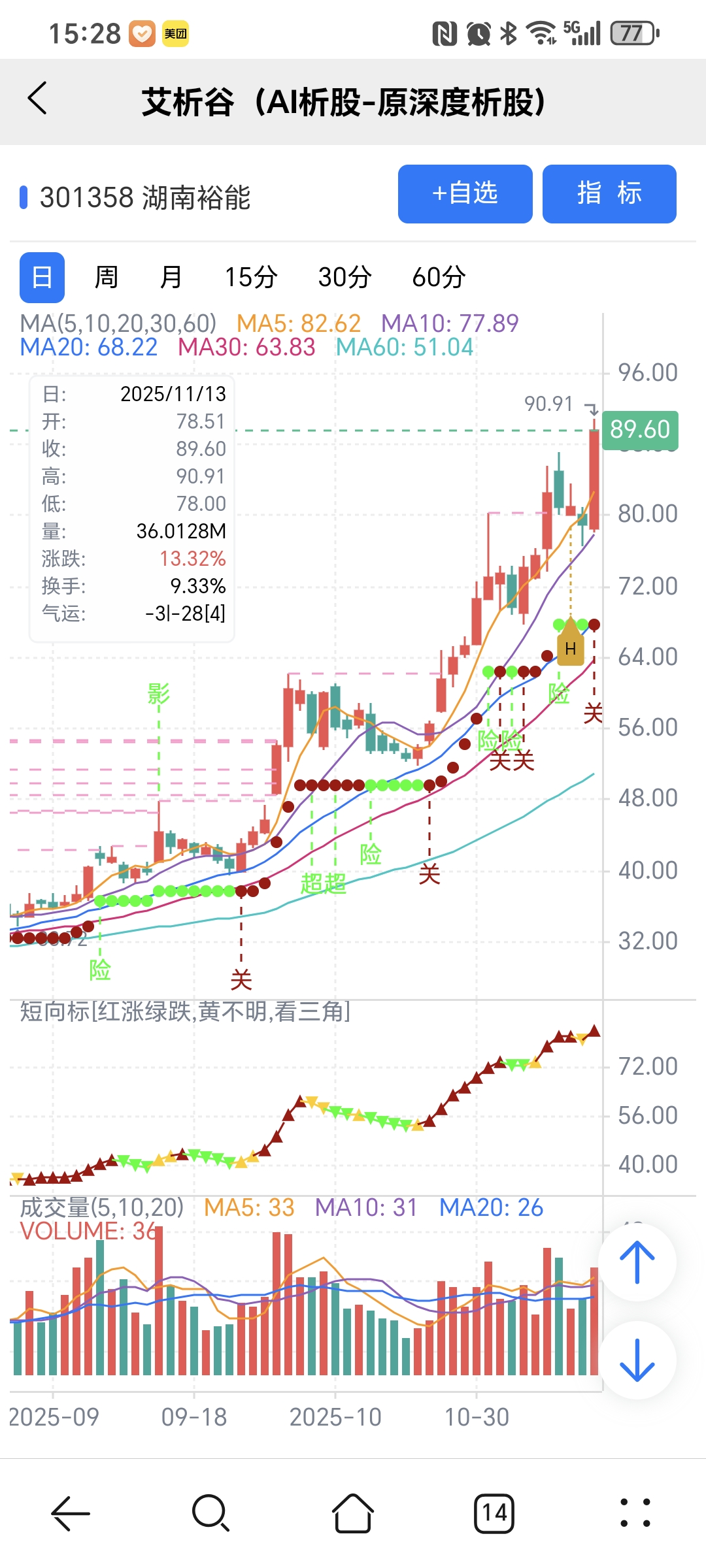 图中H 关注标记是对应AI选股模型当天下午2点多给出。
