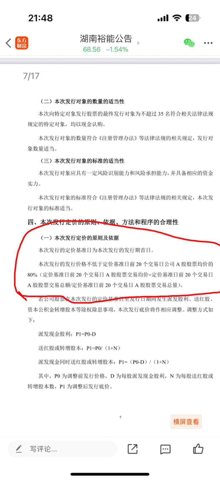 $湖南裕能(SZ301358)$ 到时候定价是按前二十个交易日的平均价的百分之八十,现在谁也不确定定增价是多少,但是可以确定反正不会是40多那么低,估计60左右,误差几块钱左右
