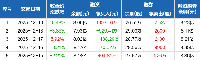 湖南裕能:融资净买入1303.66万元,融资余额8.06亿元(12-19)