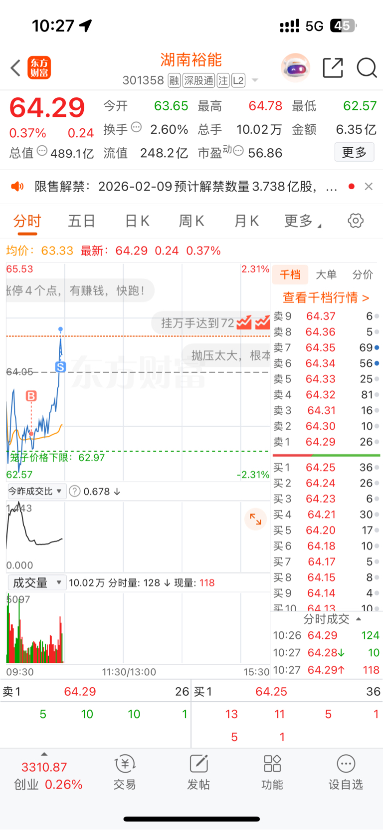 $湖南裕能(SZ301358)$ 这个T舒服了