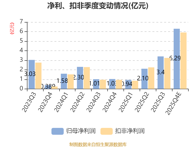 据公告,公司业绩变动原因为, 新能源汽车及储能市场快速发展,带动锂电池正极材料需求增长,且出现了结构性供应紧缺,公司磷酸盐正极材料产品销量随之大幅增长,尤其是公司新产品精准契合下游市场对锂电池更高能量密度、更强快充性能、更大电芯容量的升级要求。2025年下半年,主要原材料碳酸锂价格回升,加上公司一体化布局持续推进,成本管控卓有成效,整体盈利能力有所提升。