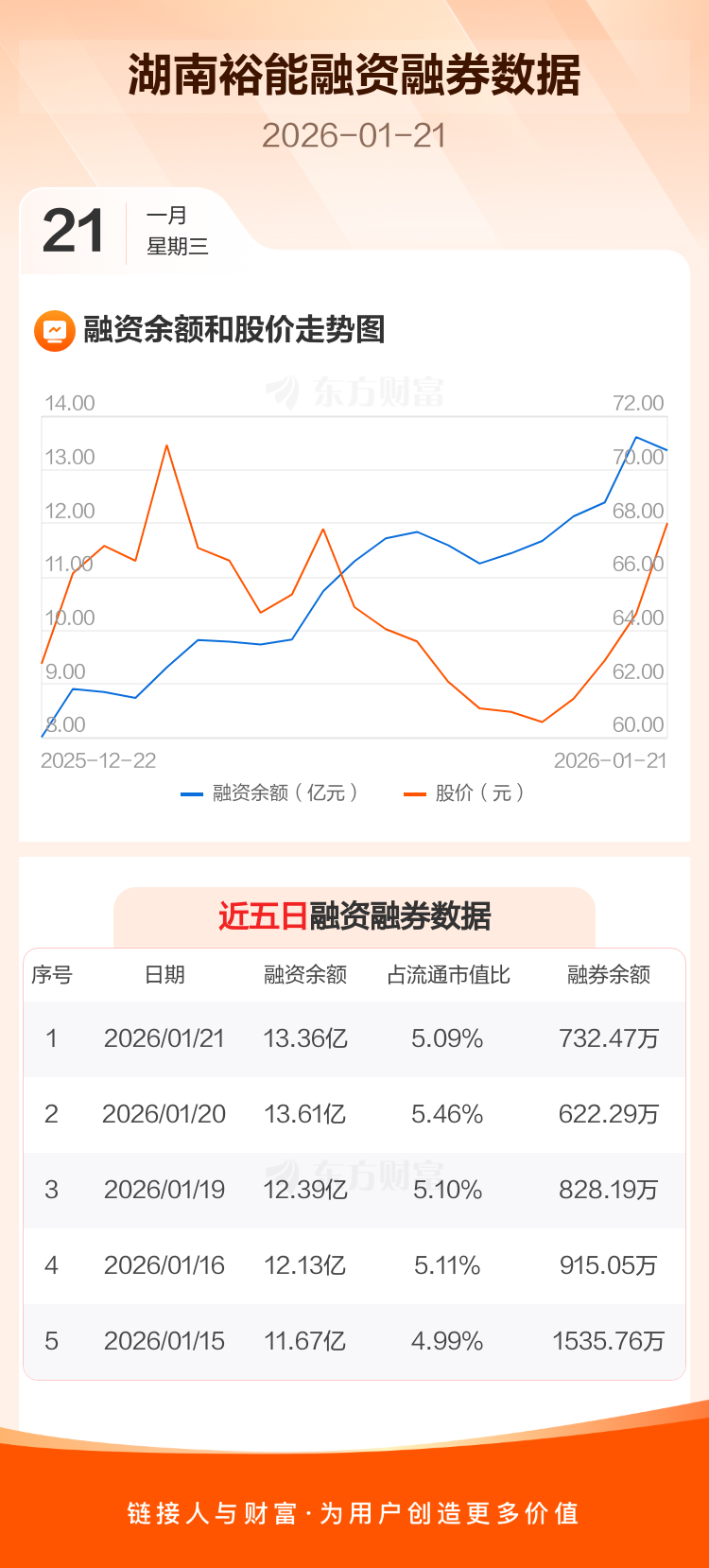 交易所最新数据显示,湖南裕能于2026年1月21日获融资买入3.42亿元,融资偿还3.67亿元,当日融资净偿还2538.2万元。目前,该股融资余额13.36亿,占流通市值比例为5.09%。