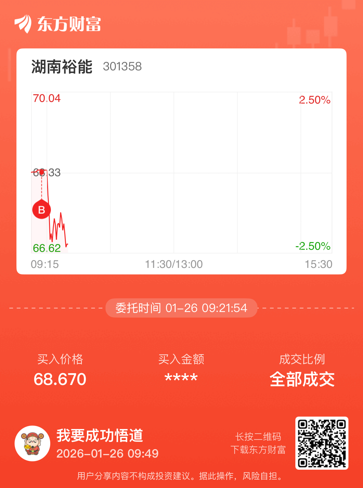 温馨提示: 1.根据《证券法》规定,禁止编造、传播虚假信息或者误导性信息,扰乱证券市场;2.用户在本社区发表的所有资料、言论等仅代表个人观点,与本网站立场无关,不对您构成任何投资建议。用户应基于自己的独立判断,自行决定证券投资并承担相应风险。《东方财富社区管理规定》