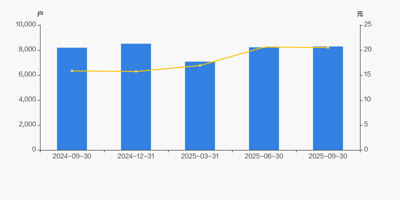 截至2025年9月30日,公司最新总股本为1.2亿股,其中流通股本为3586.39万股。户均持有流通股数量由上期的4365股下降至4332股,户均流通市值8.87万元。