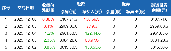 东南电子:融资净买入138.69万元,融资余额3107.71万元(12-08)