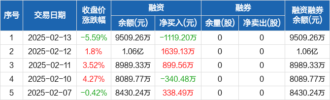 荣旗科技:融资净偿还1119.2万元,创近一年新高(02-13)
