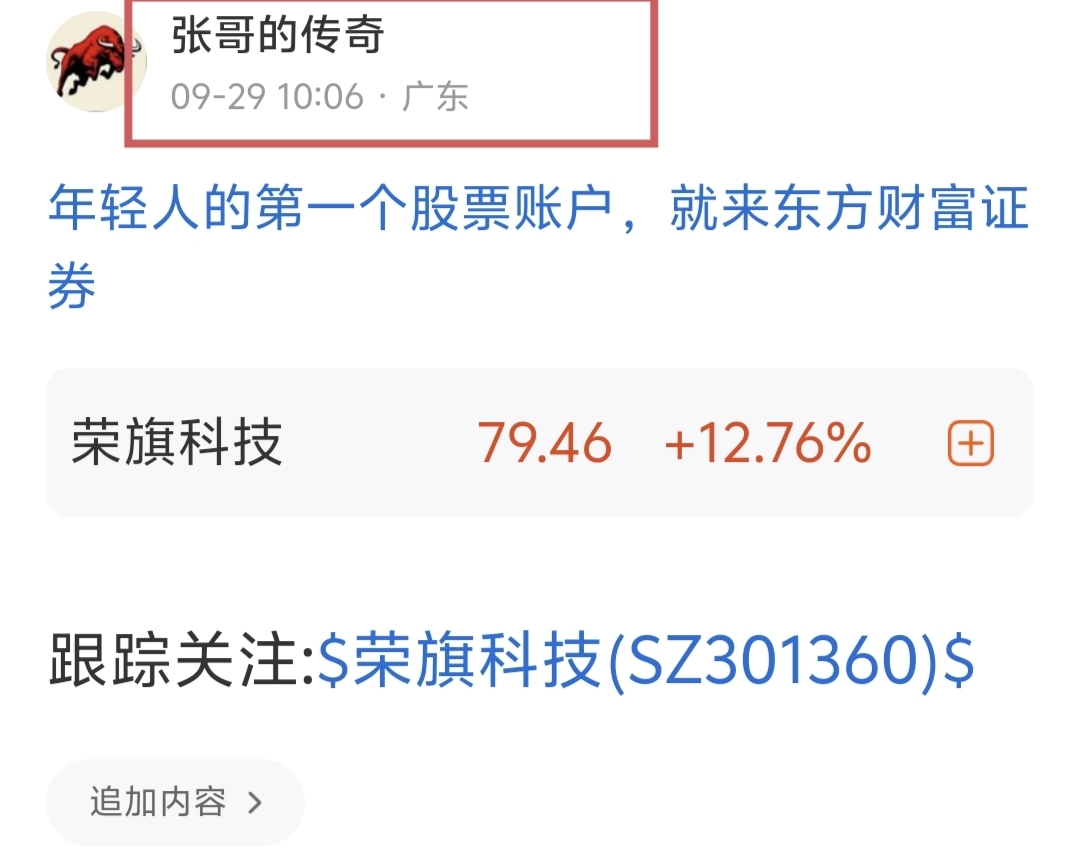 大涨$荣旗科技(SZ301360)$牛不牛 点赞 跟我张哥的节奏