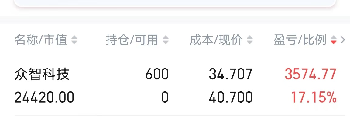 2025年11月5日星期三买入众智科技,当天涨停,20%的涨停,当天收盘获利17.15%,见上图。