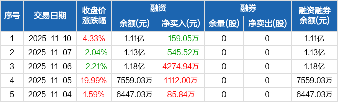 众智科技:融资净偿还159.05万元,融资余额1.11亿元(11-10)
