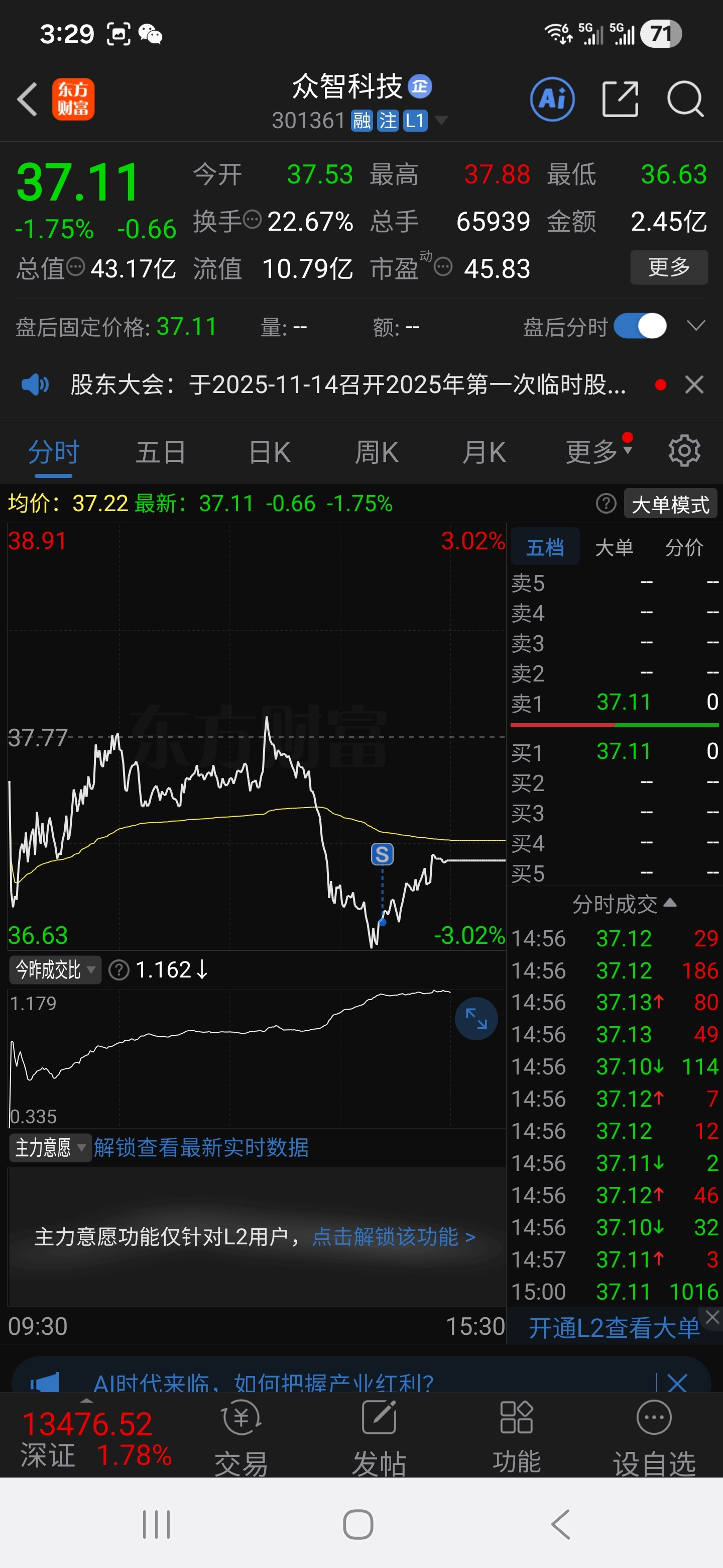 $众智科技(SZ301361)$ 破位,而且套牢太多,主力也不会抬轿子,昨天收盘进的,感觉不妙,奔着20日线去了,出了你,进了威士顿。