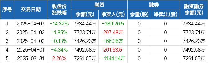 民爆光电:融资净偿还389.26万元,融资余额7334.44万元(04-07)