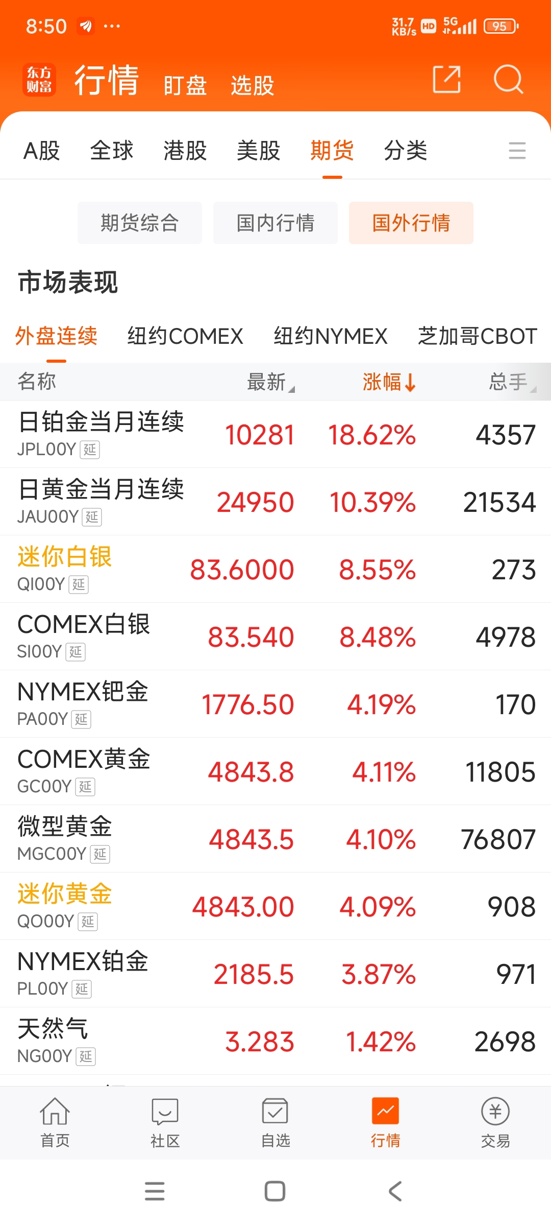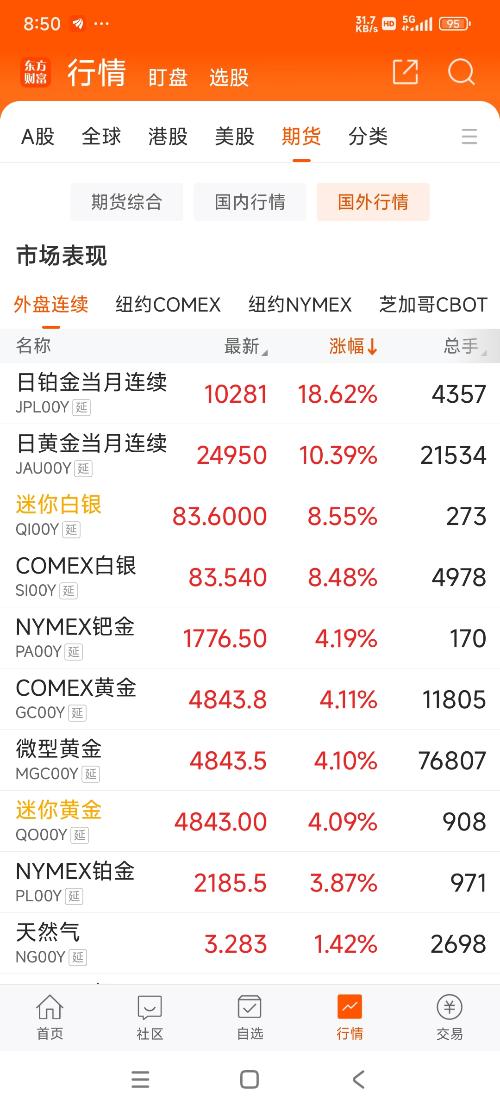 目前市场主线没有,只有这些强势股比较亮眼,建议大家最好空仓观望,觉得自己是短线高手的可以参与这些强势核心龙头。黄金白银看国际期货有企稳迹象了目前观望为主。