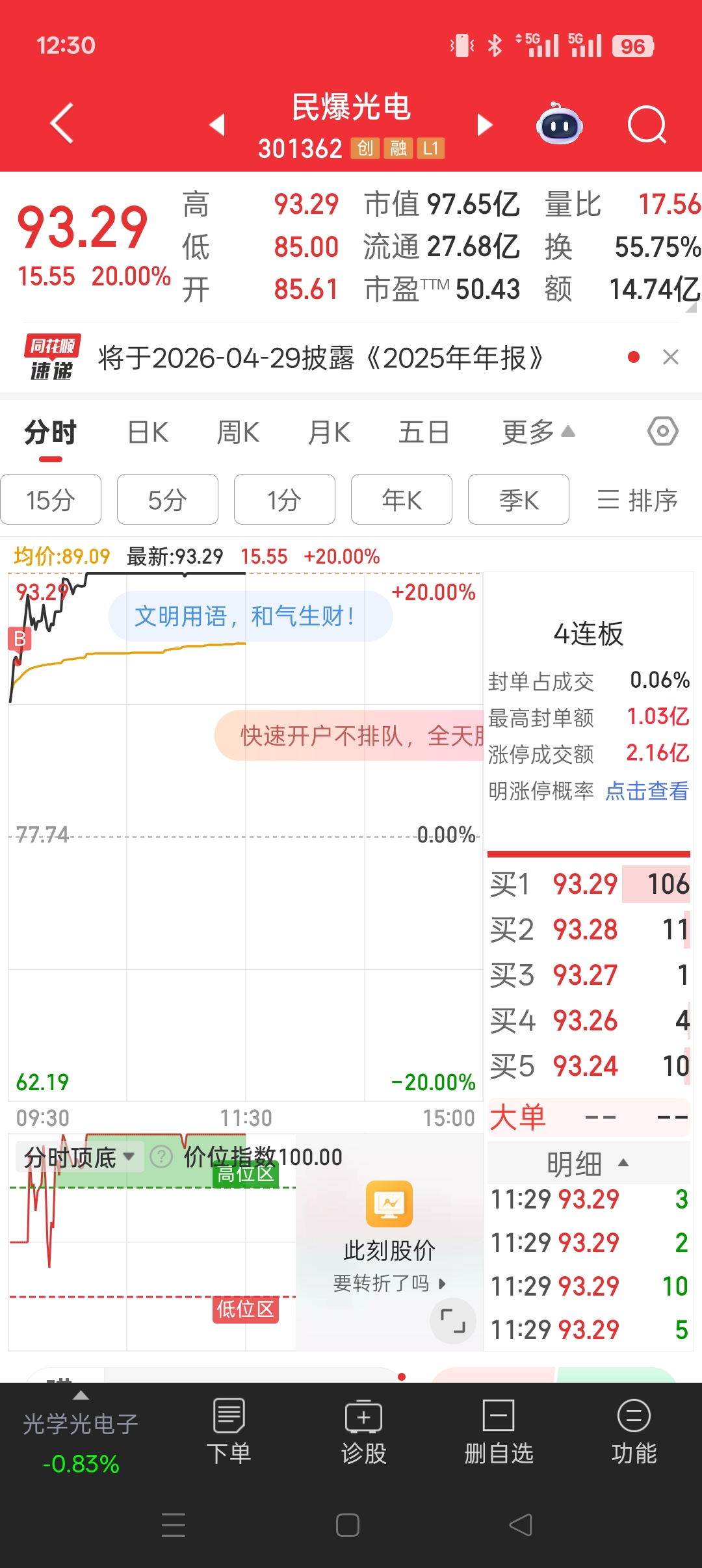 $民爆光电(SZ301362)$ 按理来说,这波应该干倒150左右才对得起这么多资金的涌入。